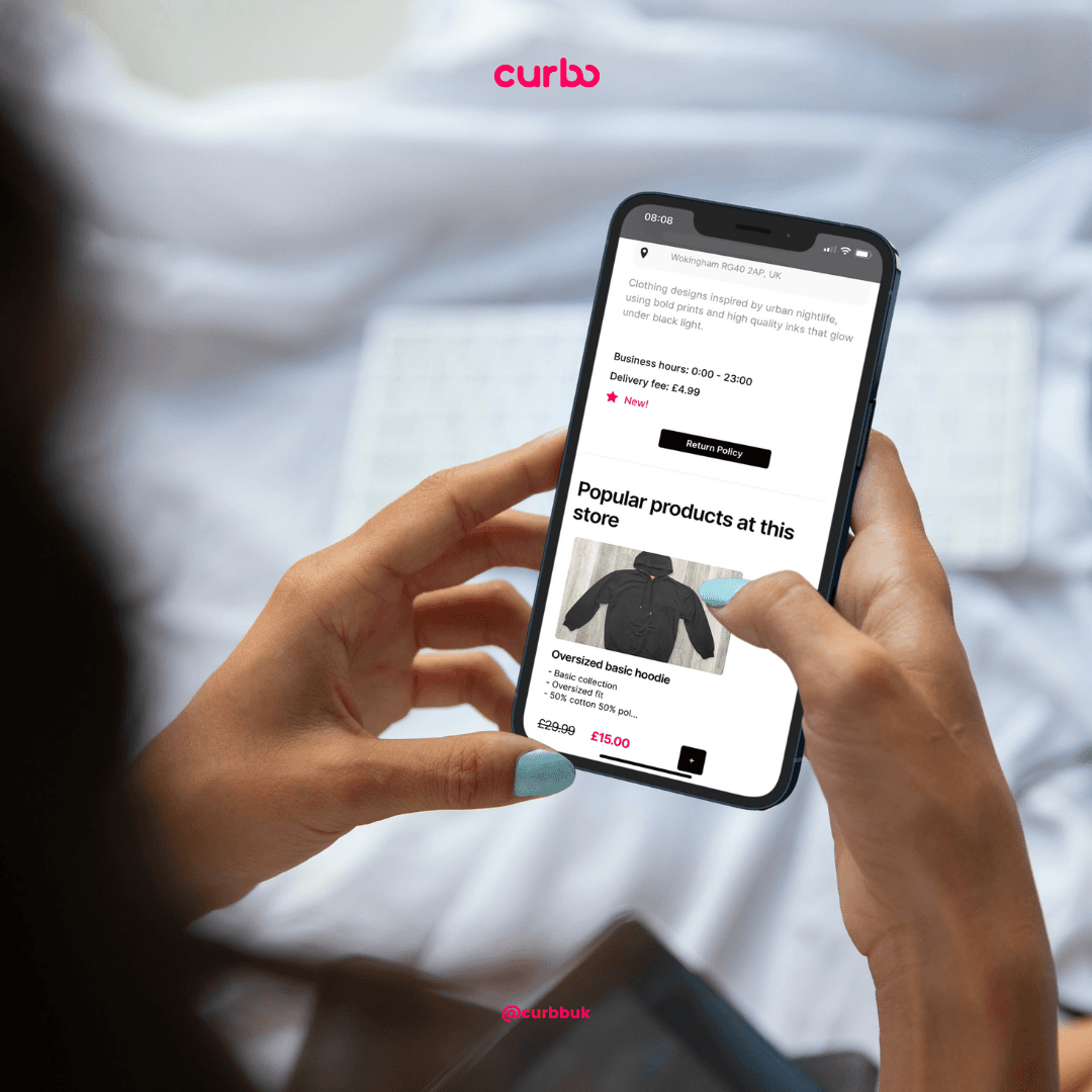 Curbb uses local shops so it has a super positive impact on the local community and local economy. Spend local → Your local digital high street grows → You find more products available for immediate delivery → Happy, thriving local economy.